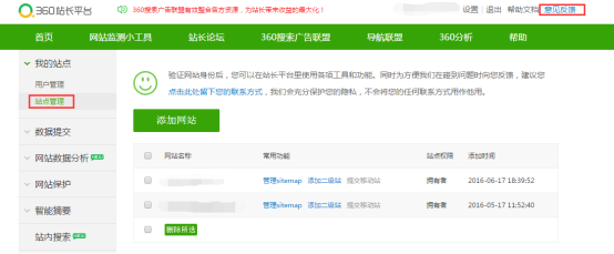 站長平臺反饋中心:http://info.so.com/feedback.html?product=zhanzhang
