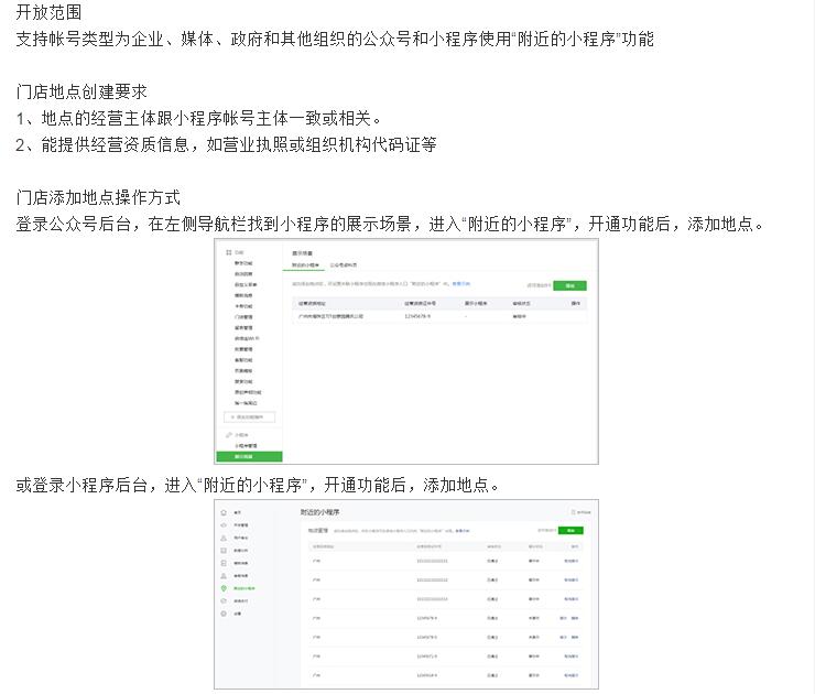 公眾號(hào)后臺(tái)新增附近的小程序功能,申請(qǐng)開通后支持添加地點(diǎn)。