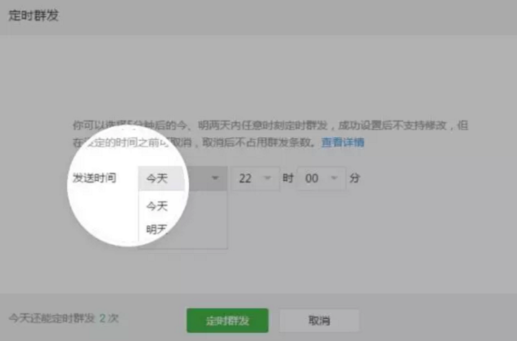 為了方便公眾號(hào)運(yùn)營者更靈活地推送消息,公眾平臺(tái)新增定時(shí)群發(fā)功能,開放給所有公眾號(hào)使用。”