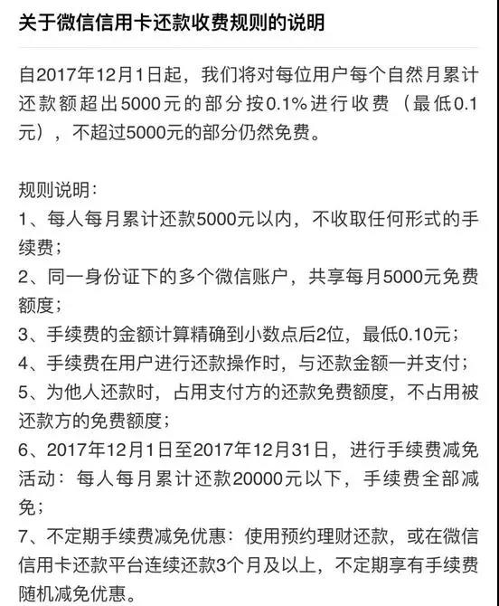 微信支付信用卡還款將收費(fèi):每月超5000部分收0.1%