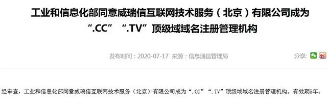 近日,頂級(jí)域名.CC正式通過(guò)工信部域名注冊(cè)審批,國(guó)內(nèi)網(wǎng)站可以合法注冊(cè)、使用,審批備案!